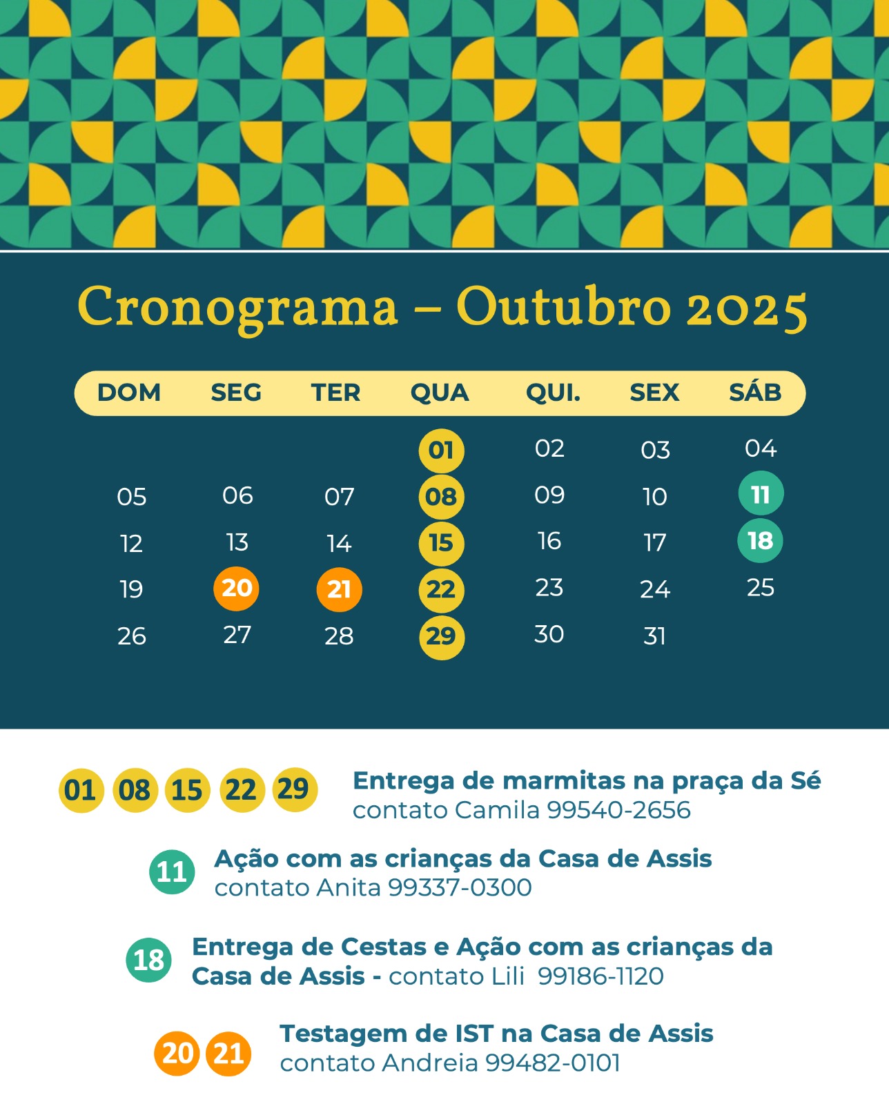Palestras médicas e distribuição de kits de higiene na promoção da saúde e testagem de IST e encaminhamento para tratamento.