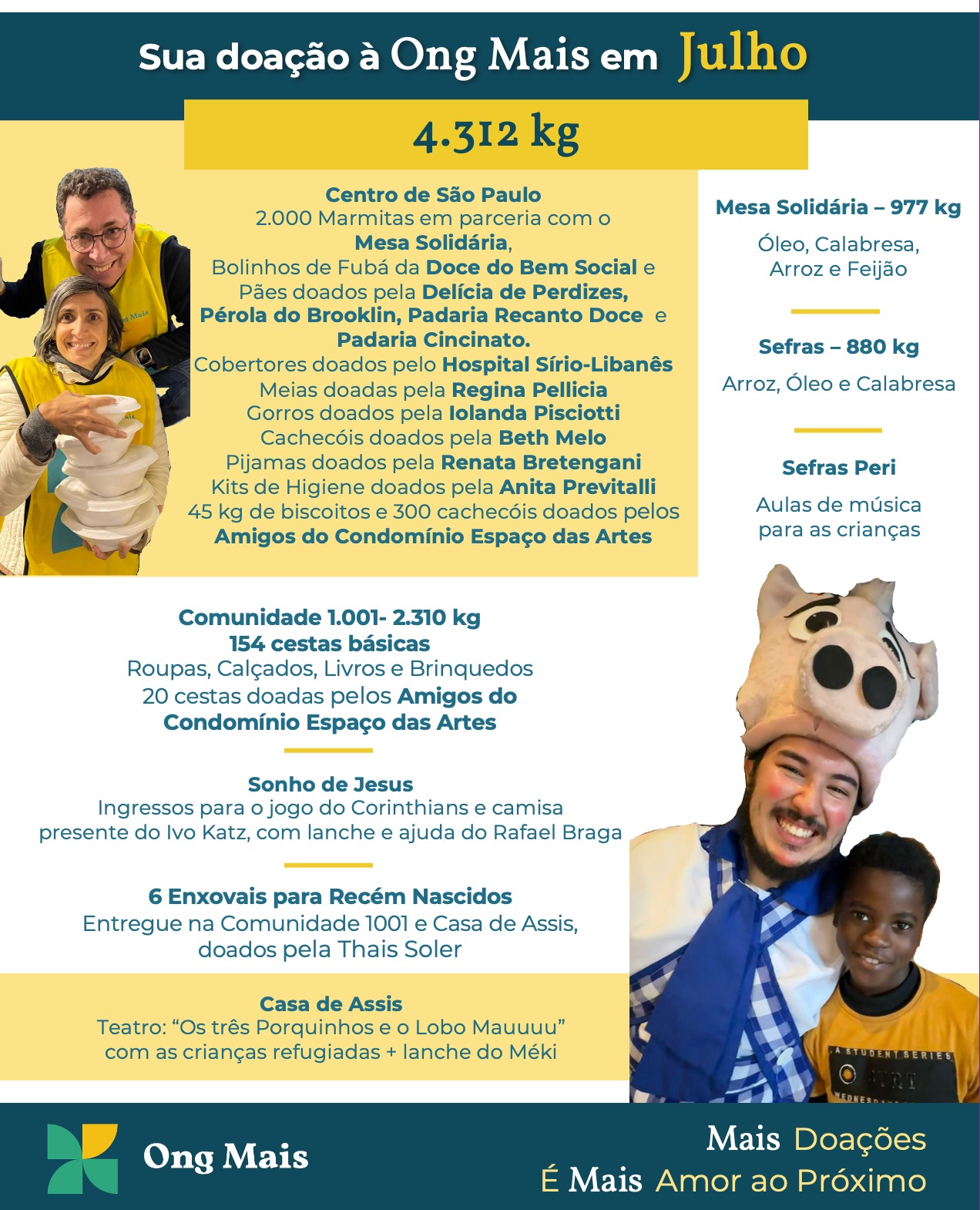 Ong MAIS é GENTE cuidando de GENTE. Na rua, nas instituições, nos abrigos e comunidades, vestimos um colete amarelo e nossos super poderes super poderosos – olho no olho, toques e gestos, em forma de marmitas e também abraços, além da certeza de que onde há amor, coragem e vontade, há esperança! E assim vamos juntos, diariamente, de ação em ação, de encontro em encontro, aprendendo e transformando o mundo em um lugar de dignidade, cuidado mútuo, ternura e amor entre as pessoas.